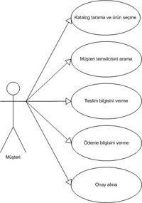 Yukarıda gösterilen diyagramdan sipariş sürecinin işleyişi kolaylıkla çıkarılabilmektedir. Sistem gereken eylemleri yerine getirebilmek için listelenen bütün use case’leri gerçekleştirmelidir.
